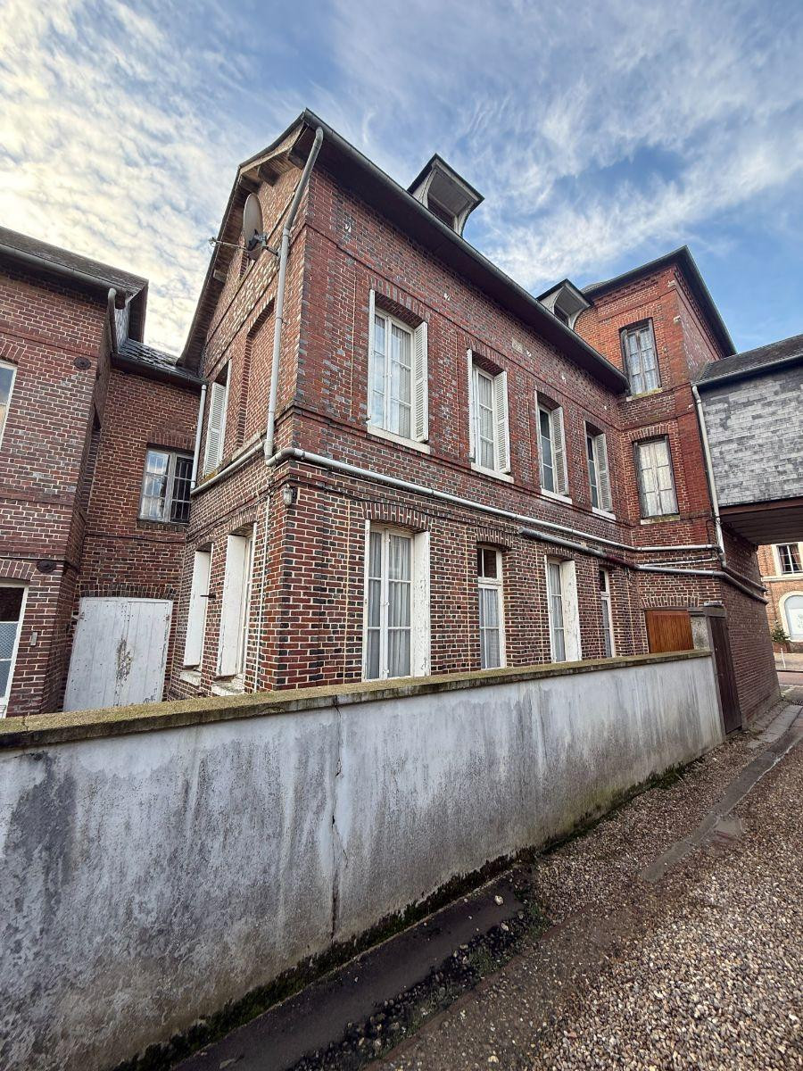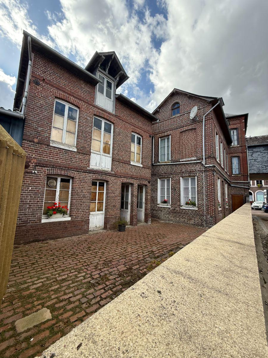 IMMEUBLE DIVISIBLE – VENTE – RY- CENTRE VILLE En Exclusivité immeuble en briques élevé sur deux niveaux, idéalement situé en centre-ville de Ry. L’ensemble comprend trois bâtiments en continuité disposés en L autour d’une cour pavée intérieure, avec accès direct sur rue. L’agencement des volumes, la présence de plusieurs accès indépendants et de plusieurs escaliers offrent une circulation aisée entre les trois bâtiments et permettent d’envisager une division en plusieurs appartements distincts. Une surface commerciale complète cet ensemble. Deux bâtiments complémentaires, situés dans la continuité de l’immeuble principal, sont destinés à des usages de stockage et d’atelier, dont un avec mezzanine. Gros œuvre en bon état. Toiture en ardoises. Cour pavée privative.