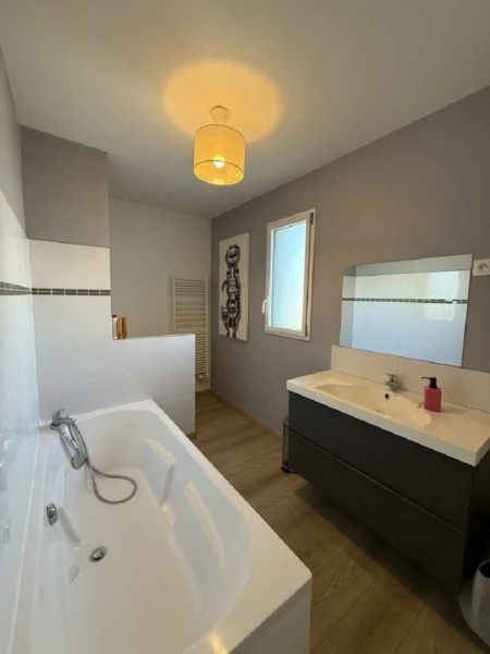 À vendre : 25 minutes de Rouen – Maison individuelle de 150 m² – 4 chambres – Construction contemporaine de 2012, située dans un quartier calme. Rez-de-chaussée : entrée, cuisine ouverte sur salon/salle à manger (50 m²), suite parentale (22 m²), WC séparé, buanderie. À l’étage : 3 chambres, salle de bains avec WC. Extérieur : garage et dépendance, grande terrasse Sud/Ouest. Terrain clos : 1034 m². Ne manquez pas cette opportunité ! – Classe énergie : D – Classe climat : B – Contactez-nous pour plus d’infos ou pour une visite. Tel: 06.03.25.44.29 / 02.32.98.93.96 ). – Les informations sur les risques auxquels ce bien est exposé sont disponibles sur le site Géorisques: www.georisques.gouv.fr